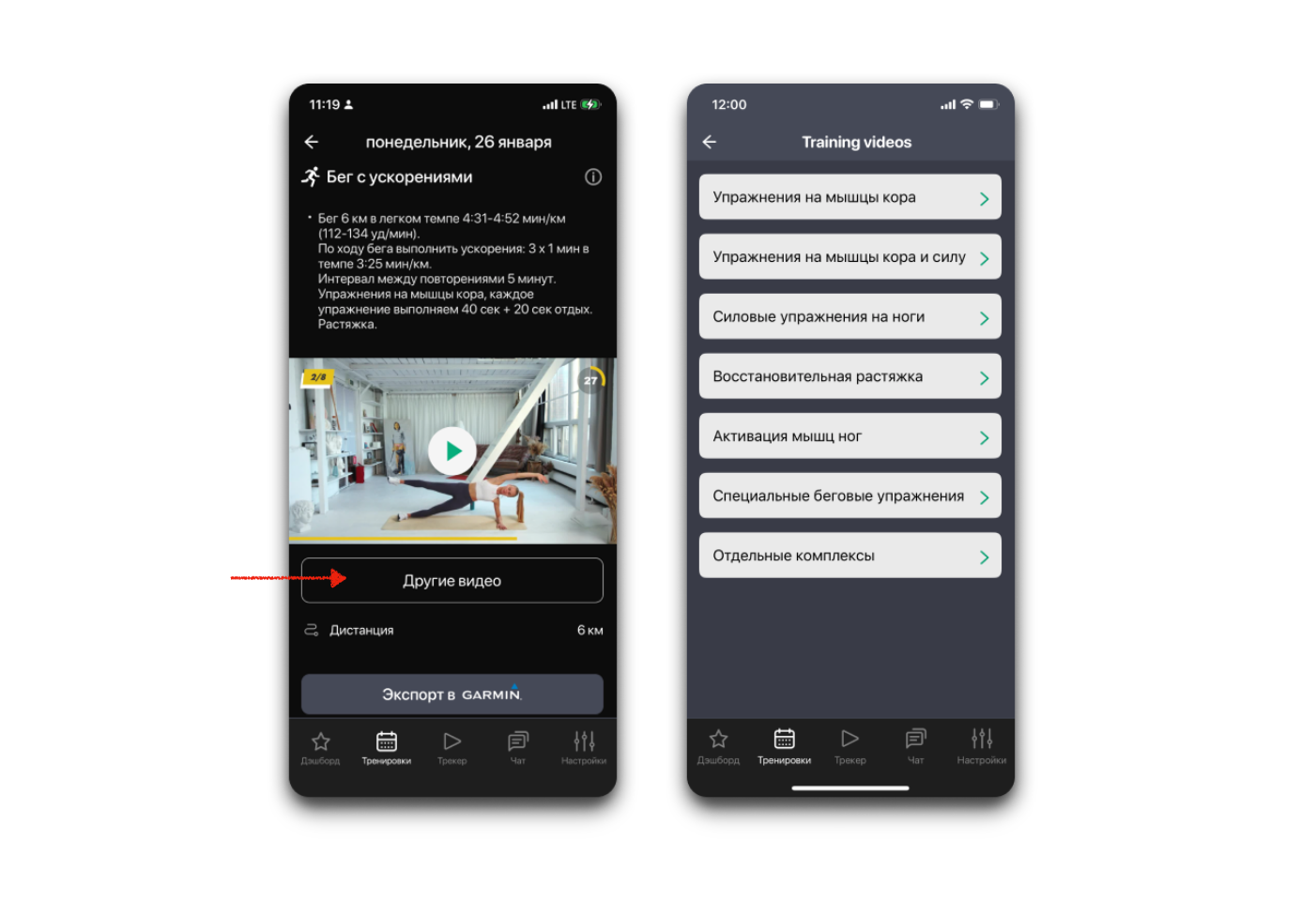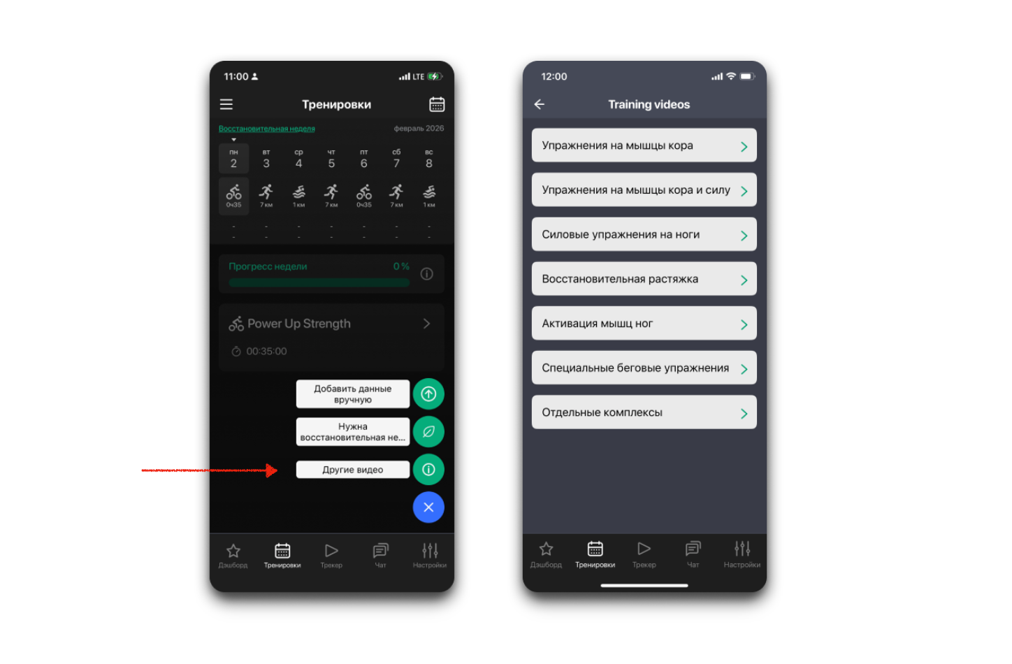 Почти в каждом тренировочном задании вашего плана есть видео с дополнительным упражнением. Но этого "почти" не хватает - вы хотите больше видео! Бывает, что предлагаемое видео не походит - вы хотите другое видео! С функцией "Другие видео" вы можете выбрать и просмотреть любое видео из библиотеки в любой момент.