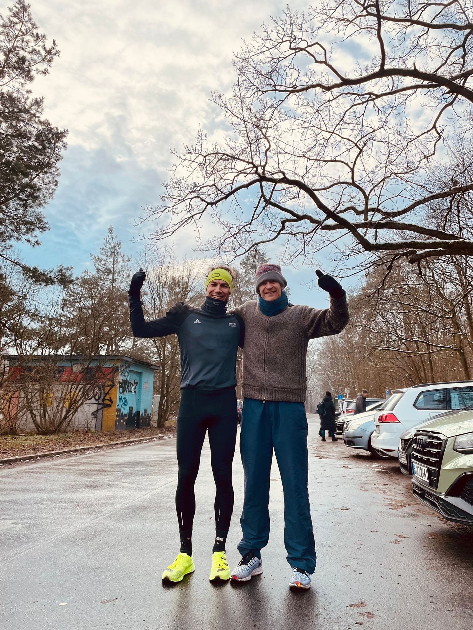 На велосипеде подъезжает укутанный в странную одежду напарник - завидую ему. Он начинает говорить какие-то очень правильные слова. Их уже сложно расслышать, но в вакууме ощущений я чувствую поддержку. Его смешная одежда невольно вызывает улыбку. Он поворачивается ко мне и говорит: “Ты как Кипчоге, он тоже улыбается, когда бежит на финиш” Опять этот Кипчоге…Но как же хорошо это работает! 41-й км